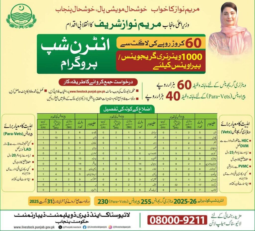 ویٹرنری گریجویٹس کے لیے 60 ہزار روپے ماہانہ وظیفہ -