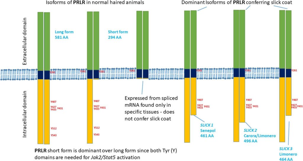 d. The effect traces to PRLR variants seen in several breeds. You can introduce slick via conventional breeding (crossing/backcrossing) or, where regulation allows, via gene-editing programs.