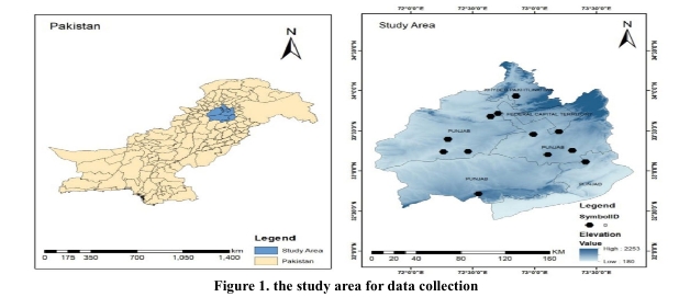 Study Design: A comprehensive study was carried out on commercial broiler farming practices in the Potohar region of Pakistan between March 2022 to December 2023. A cross-sectional survey was conducted in the districts Rawalpindi, Attock, Chakwal, Khushab and Haripur which were selected for this study (Figure 1). The northern Punjab region has a high density of poultry farms and reflects a diverse combination of commercial and rural farming systems.