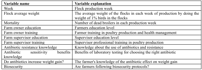 It is based on field survey data and information obtained directly from farm owners and managers throughout the weeks of the flock production cycle. Therefore, this present study aimed to assess farming practices, disease prevalence and medication, including antibiotic usage patterns in broiler flocks and their effect on flock performance by using univariate and multivariate statistical analysis.